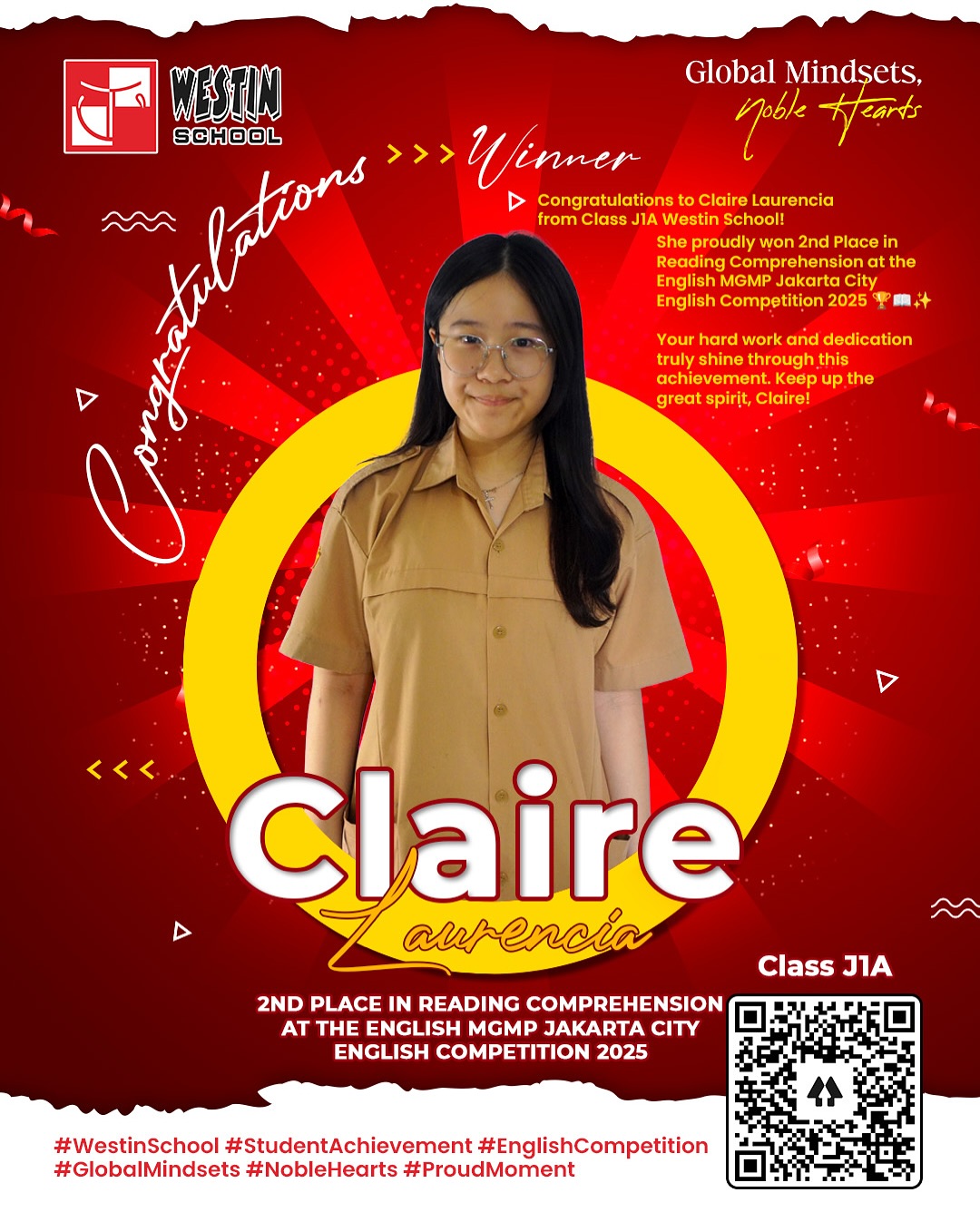 3rd Place in Reading Comprehension at The English MGMP Jakarta City English Competition 2025